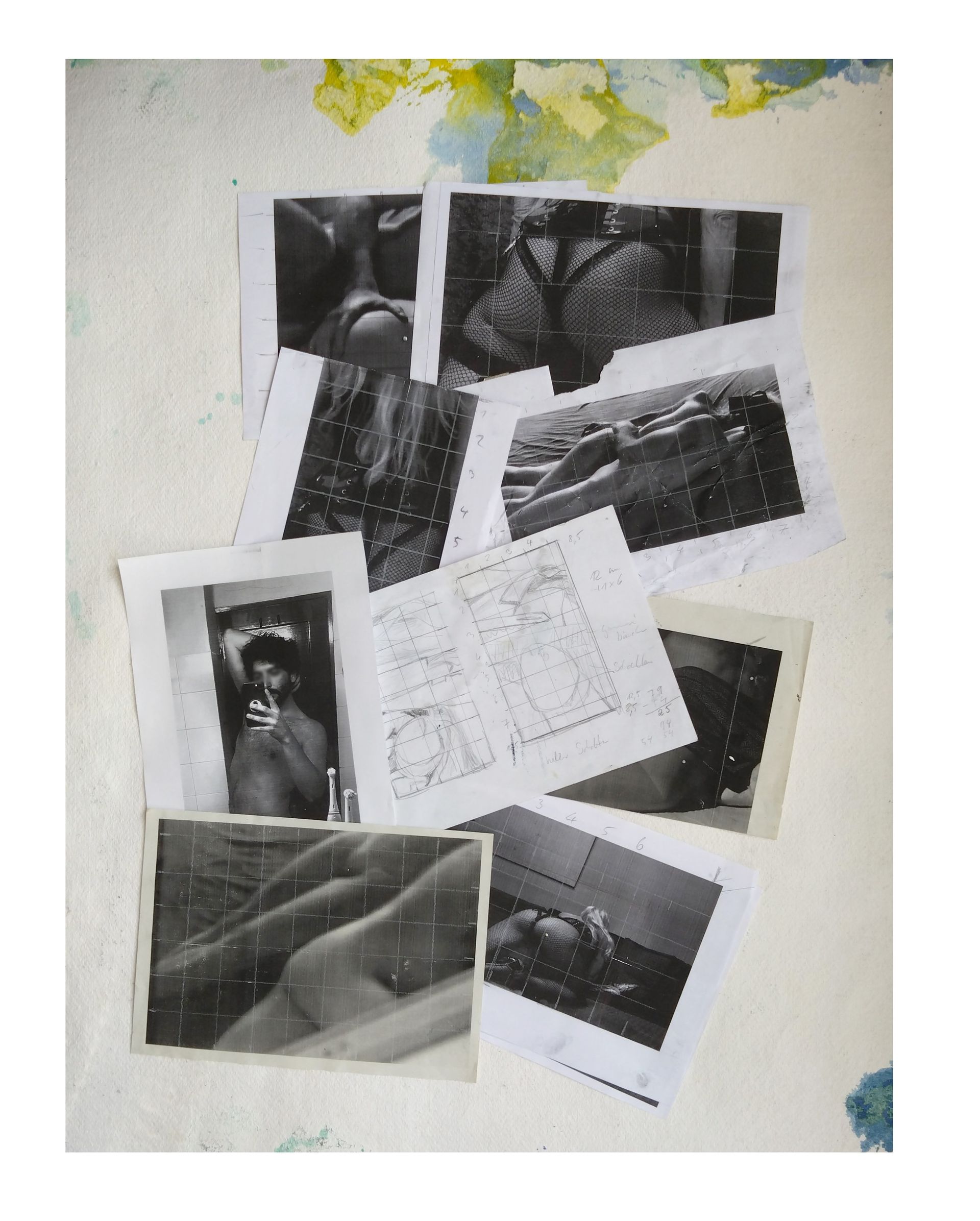 Die Hängeböden sind voll, immer noch, viel zu viele Leinwände. Vor einigen Jahren hat Maria Wollny großformatiges Büttenpapier entdeckt, das im Himalaya unter Fair-Trade-Bedingungen in kleinen Familienbetrieben hergestellt und verkauft wird. Fair ist auch, dass die Welt nicht nur aus Dickpics besteht, sondern auch aus Pussypics. Die im weiblichen Wort steckende Alliteration macht die Sache noch viel schlüssiger.